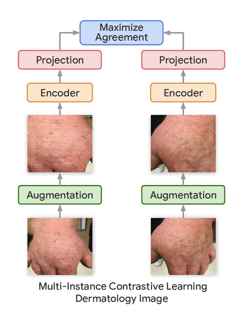 In their new work, the Google Research team used a variation of the SimCLR framework called Multi-Instance Contrastive Learning (MICLe), which learns stronger representations by using multiple images of the same condition. This is often the case in medical datasets, where there are multiple images of the same patient, though the images might not be annotated for supervised learning.