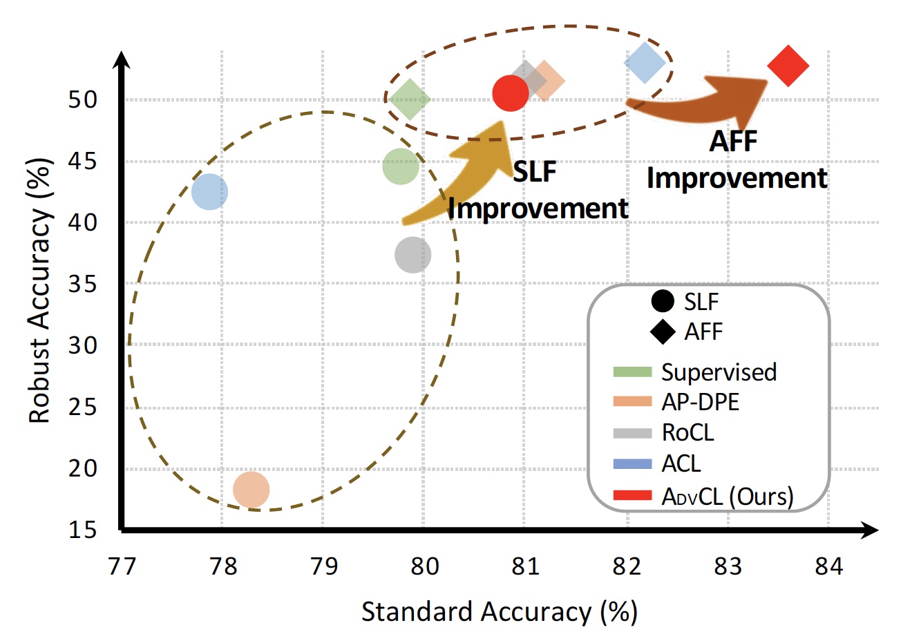 “After we experimented with existing methods, we found there’s a huge performance gap between adversarial full finetuning and standard linear finetuning, indicating that current CL methods are not able to transfer robustness from pre-training to downstream tasks,” Fan said.
