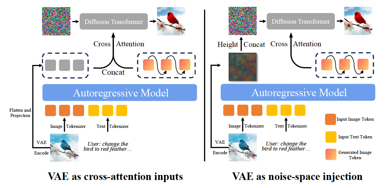 These VAE features from the reference image are integrated in two ways: they are combined with the hidden states from the autoregressive model, and they are also injected into the initial noise that the diffusion process starts with. This dual approach ensures that the generated image remains highly consistent with the original while accurately reflecting the user’s edits. This, combined with the strong multimodal reasoning of its autoregressive backbone, significantly improves BLIP3o-NEXT’s ability to follow complex instructions.
